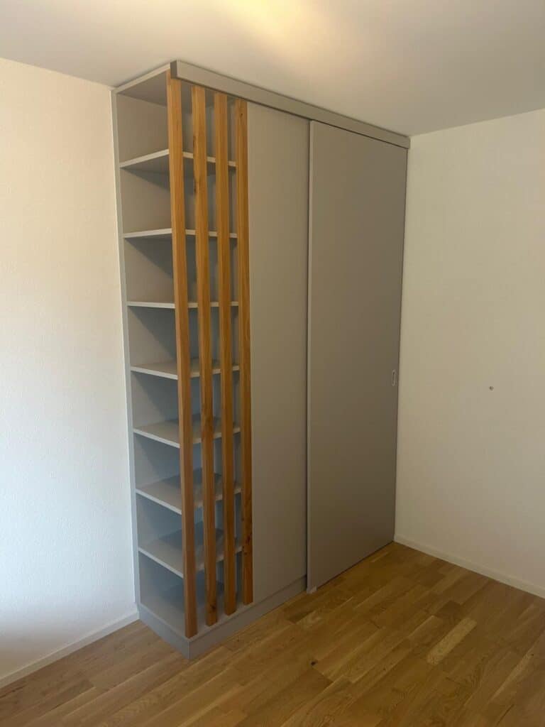 Bois massif ou placage de qualité issus de fournisseurs suisses. La fabrication est réalisée dans notre atelier vaudois pour garantir durabilité et finition soignée.